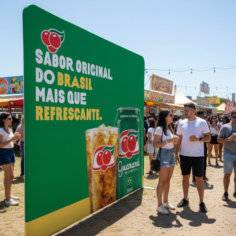 Produzimos backdrops em tecido, lonas, banners, wind banners, totens, placas, lenços personalizados, adesivos e muito mais, sempre com o compromisso de oferecer design, durabilidade e qualidade premium.