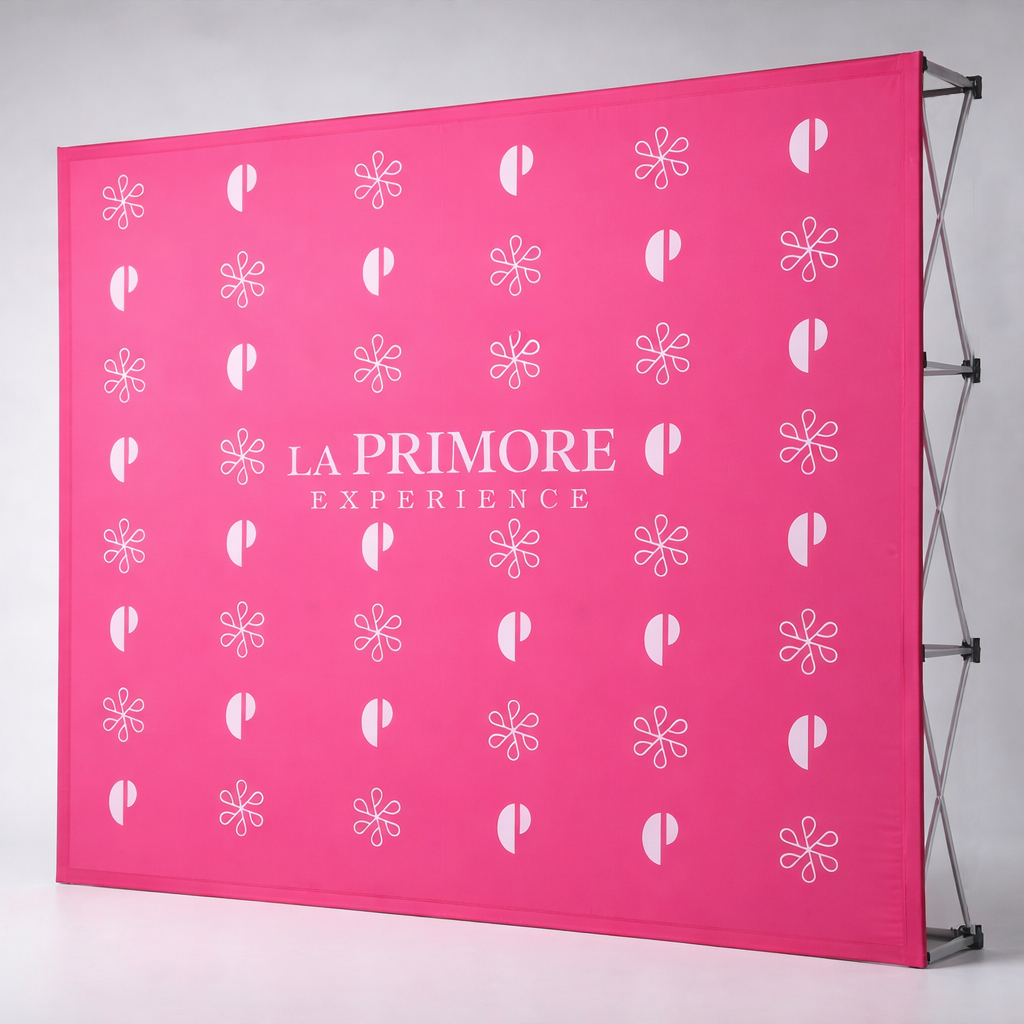 Esse tipo de backdrop conta com uma estrutura sanfonada ou retrátil, geralmente fabricada em alumínio ou material leve e resistente, acompanhada de impressão digital personalizada em lona ou tecido premium. O grande diferencial está na praticidade: a montagem é rápida, não exige ferramentas e o armazenamento é simples, ocupando pouco espaço.