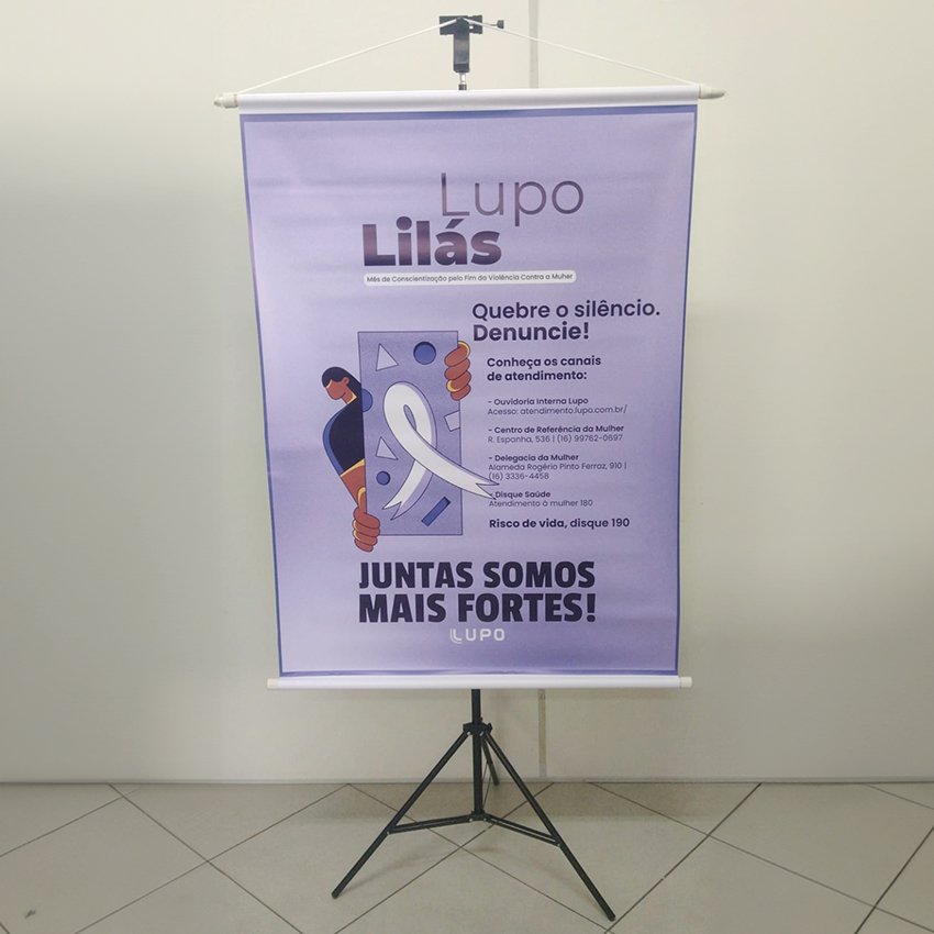 Produzido em lona de alta qualidade, o banner em lona personalizado permite impressões sob medida, com o design, cores e dimensões que sua marca precisa.